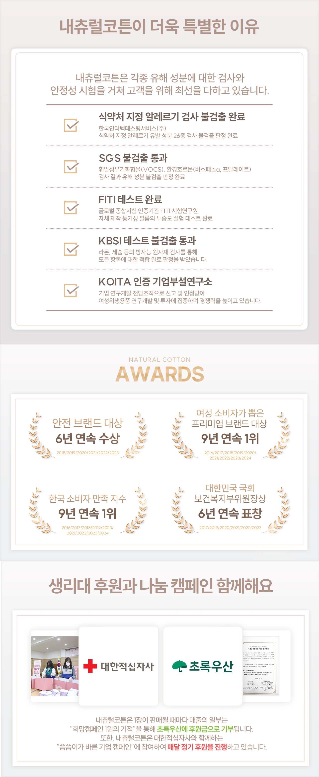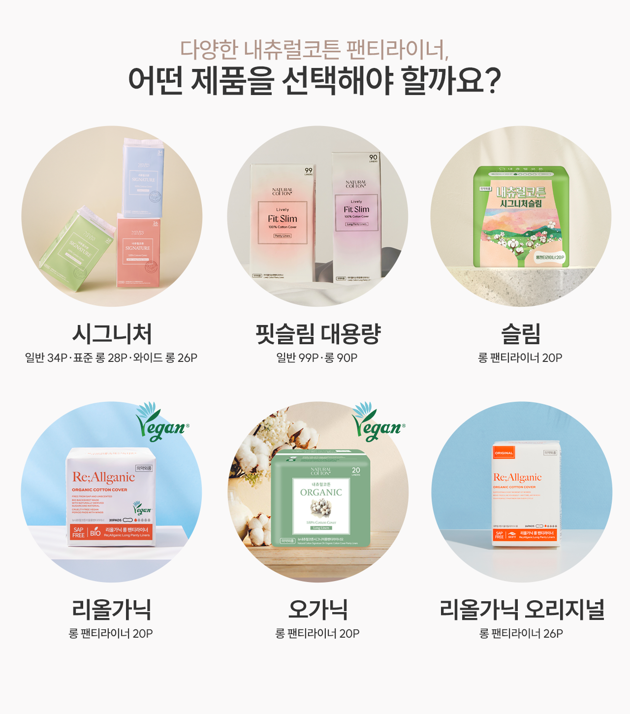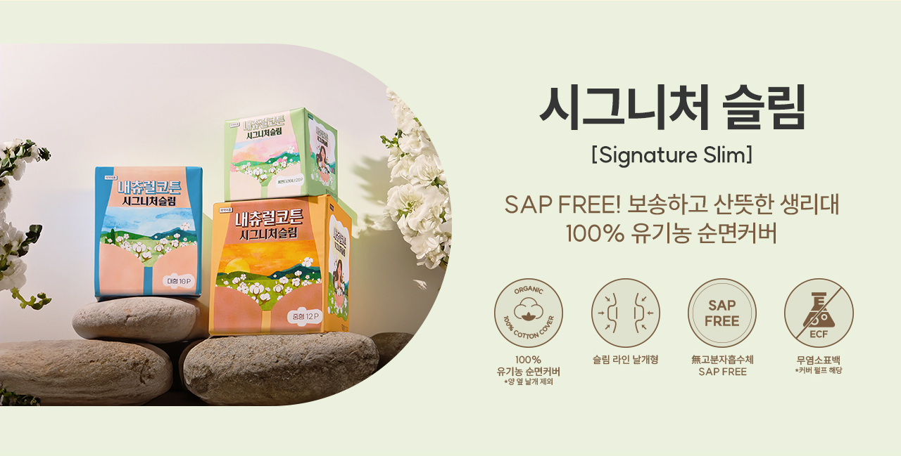 [내츄럴코튼] 시그니처 오가닉 유기농 생리대 중형/대형/오버나이트/롱 라이너 10팩 모음전