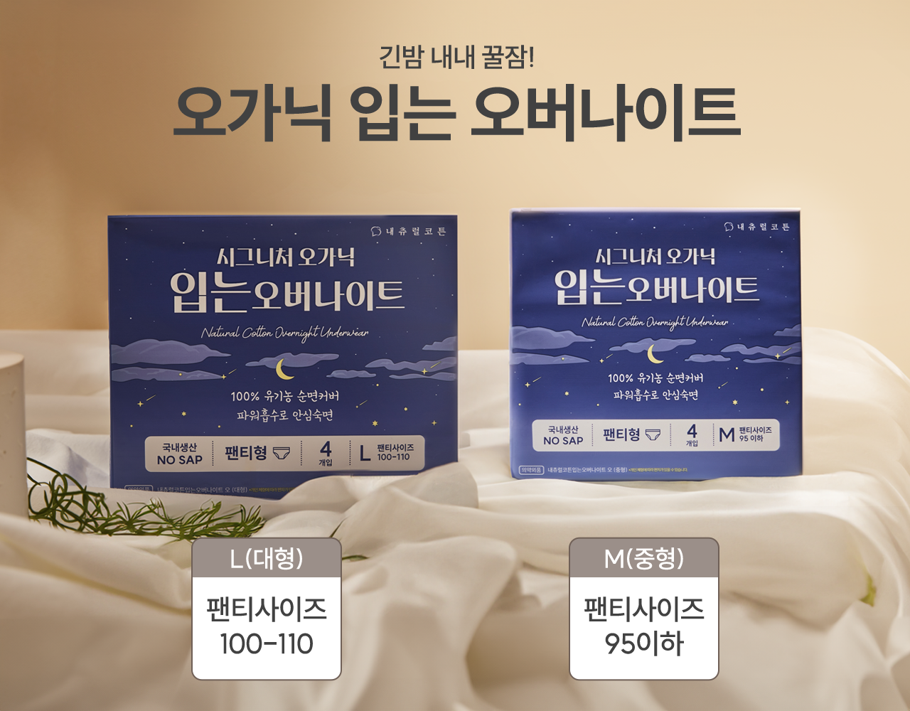 [내츄럴코튼] 시그니처 오가닉 입는 오버나이트 팬티형 4Px10팩 중형/대형
