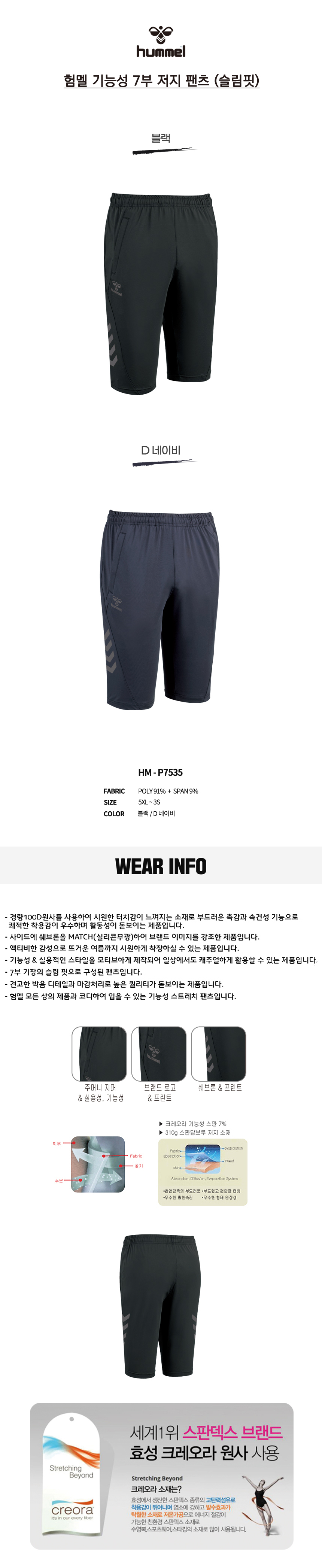 2024 S/S 험멜 기능성 슬림핏 7부 팬츠 HM-P7535