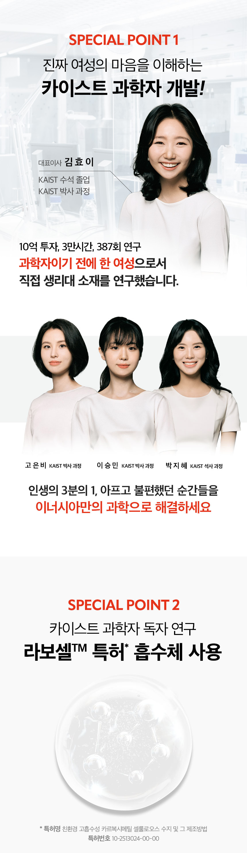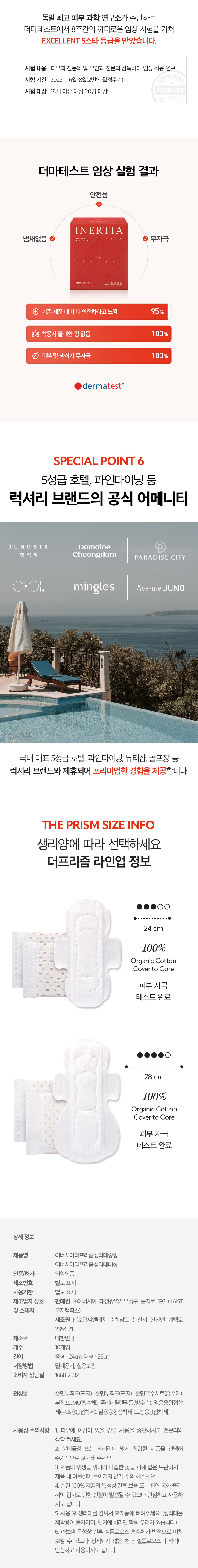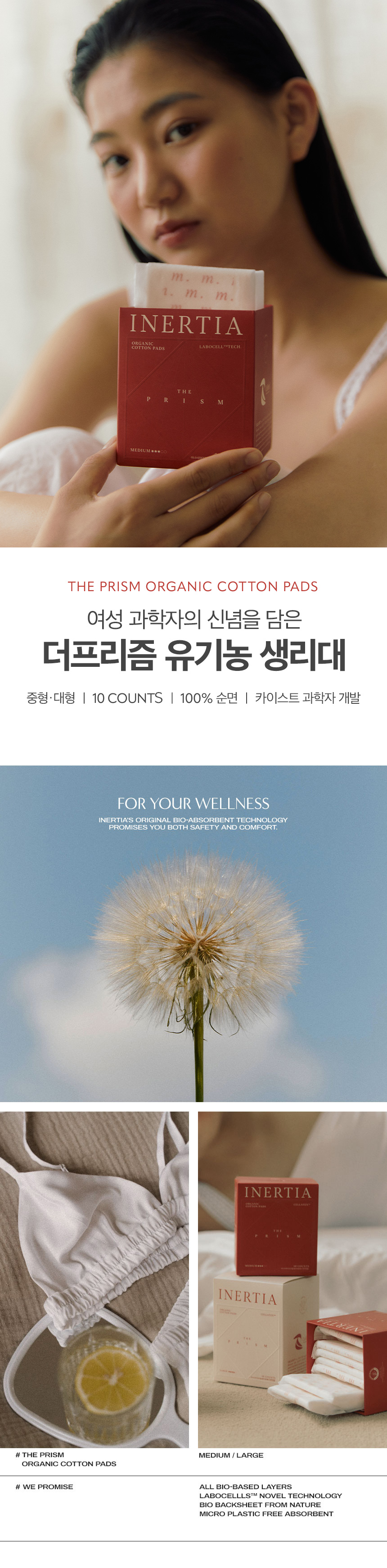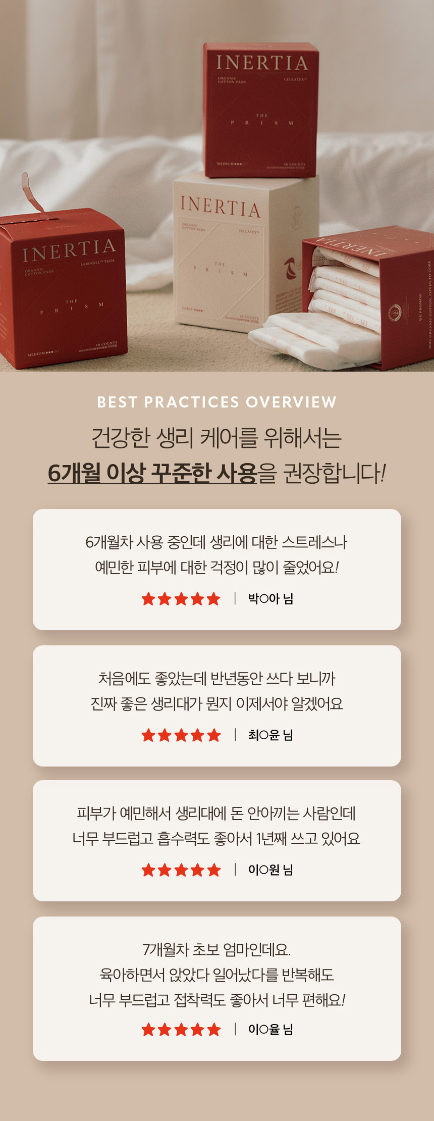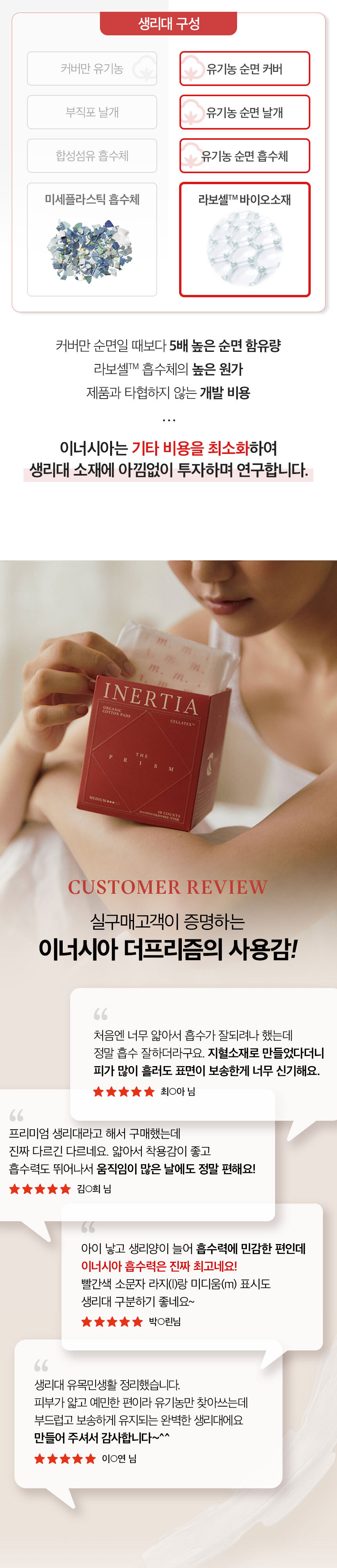[이너시아] 더 프리즘 유기농 순면 생리대 중형(10P)6팩, 라보셀 흡수체 얇지만 높은 흡수력