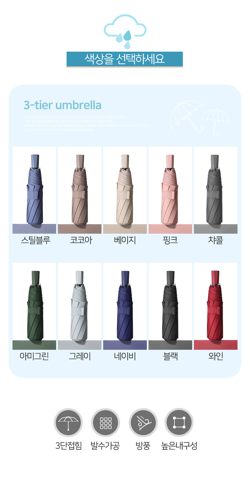 1+1 2개세트 감성 모던컬러 3단우산 여성 남성 접이식 우산 양산 무료배송