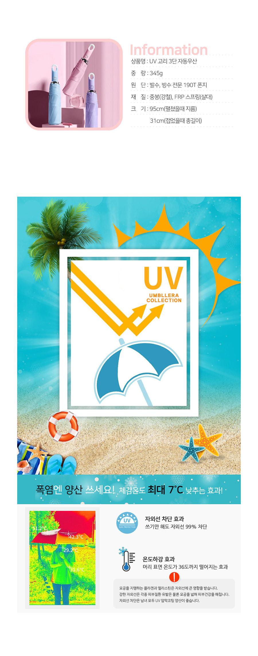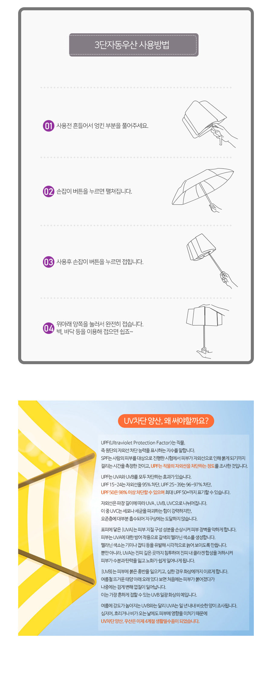 1+1(2PACK) 고리 3단자동우산 암막양산 우양산 무료배송