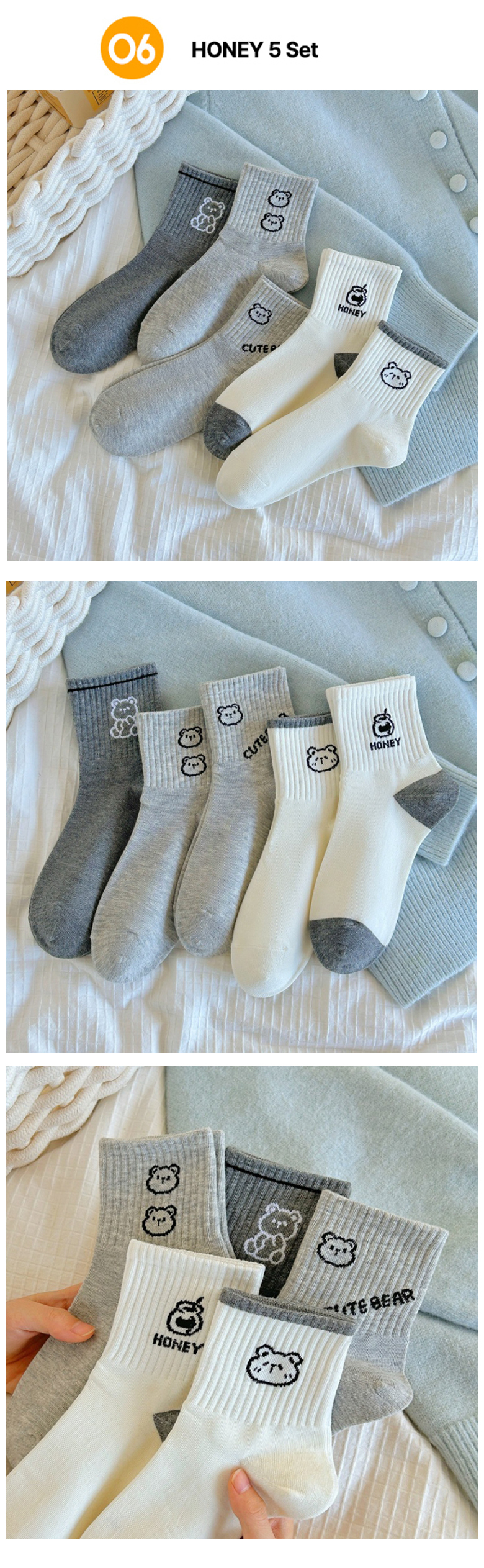 신상 양말 16종 10P 20P 세트 여성양말 중목 곰돌이 발목양말 귀여운 패션 양말 무료배송