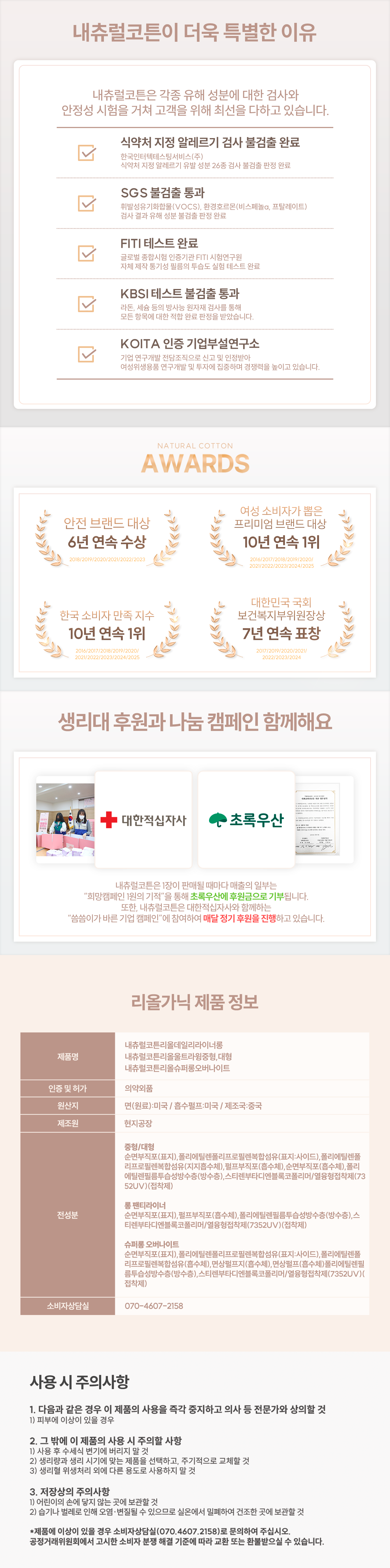 내츄럴코튼 리올가닉 오리지널 유기농 순면커버 중형 14매