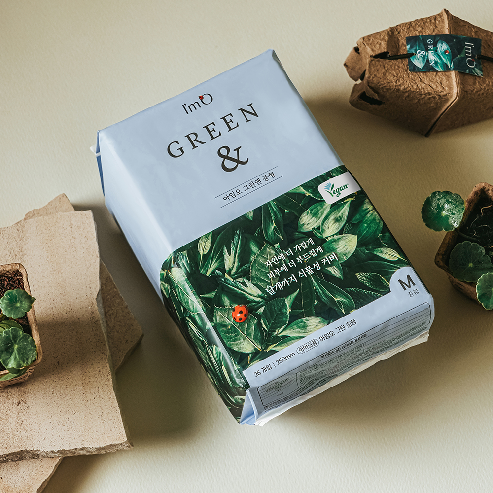 [사은품 증정][비건 대용량 생리대 아임오] 초특가+증정 그린앤 중형(26P) , 대형(24P)
