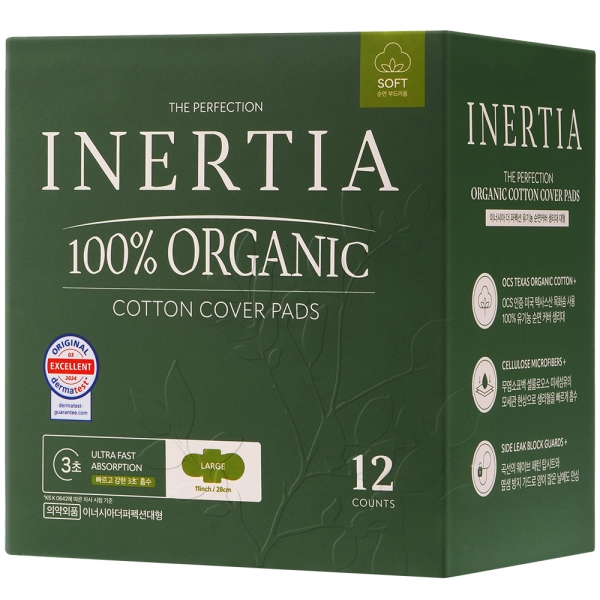 [이너시아] 더 퍼펙션 유기농 순면 생리대 대형(12P)6팩, 식물성 천연 흡수체