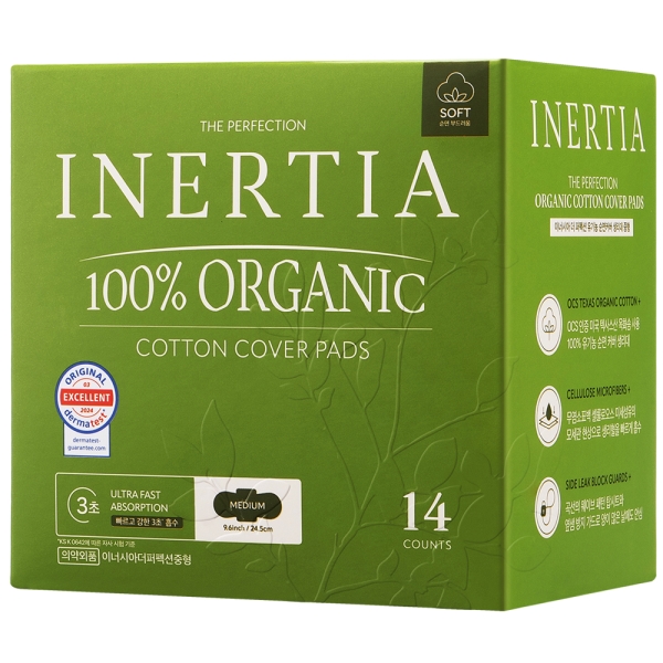 [이너시아] 더 퍼펙션 유기농 순면 생리대 중형(14P)6팩, 식물성 천연 흡수체