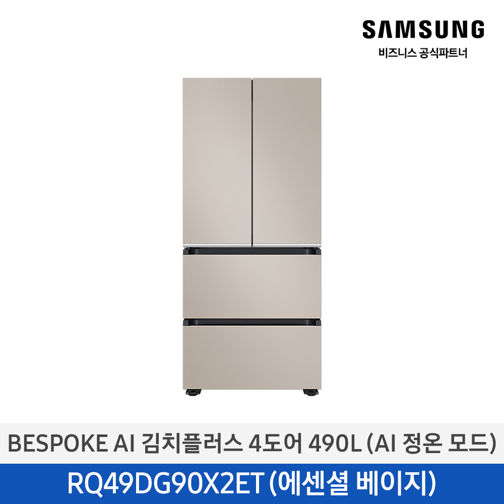 삼성 BESPOKE AI 김치플러스 김치냉장고 4도어 490L AI 정온모드 에센셜베이지 RQ49DG90X2ET