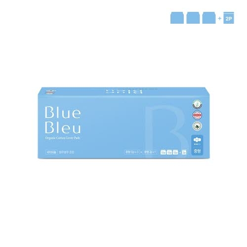 [블루블루] 유기농 순면 커버 생리대 중형(12개입)3팩+휴대용중형(2P)1팩 세트