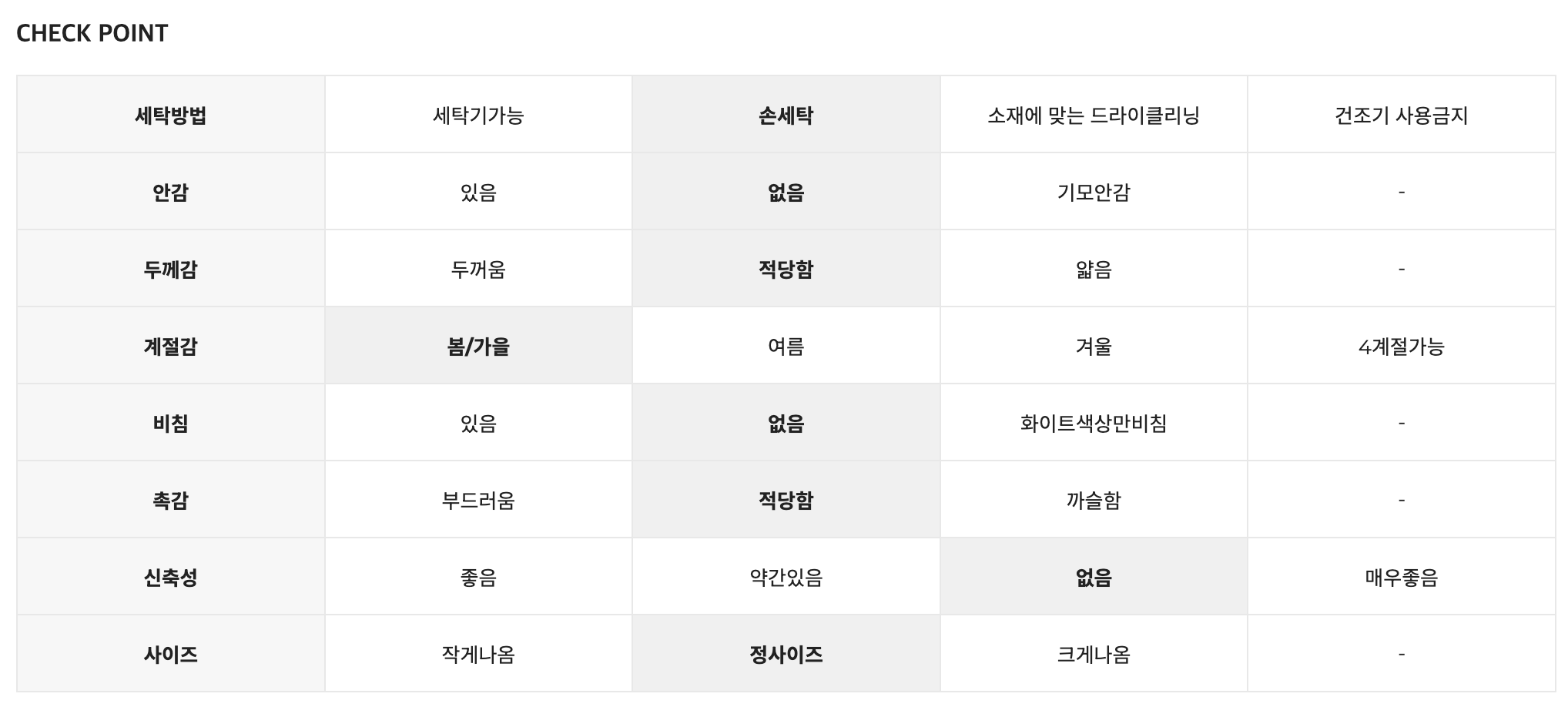 [상품정보고시]와 [제품상세정보]의 내용이 일치하지 않을 경우에는 [상품정보고시]가 더 정확한 정보입니다.