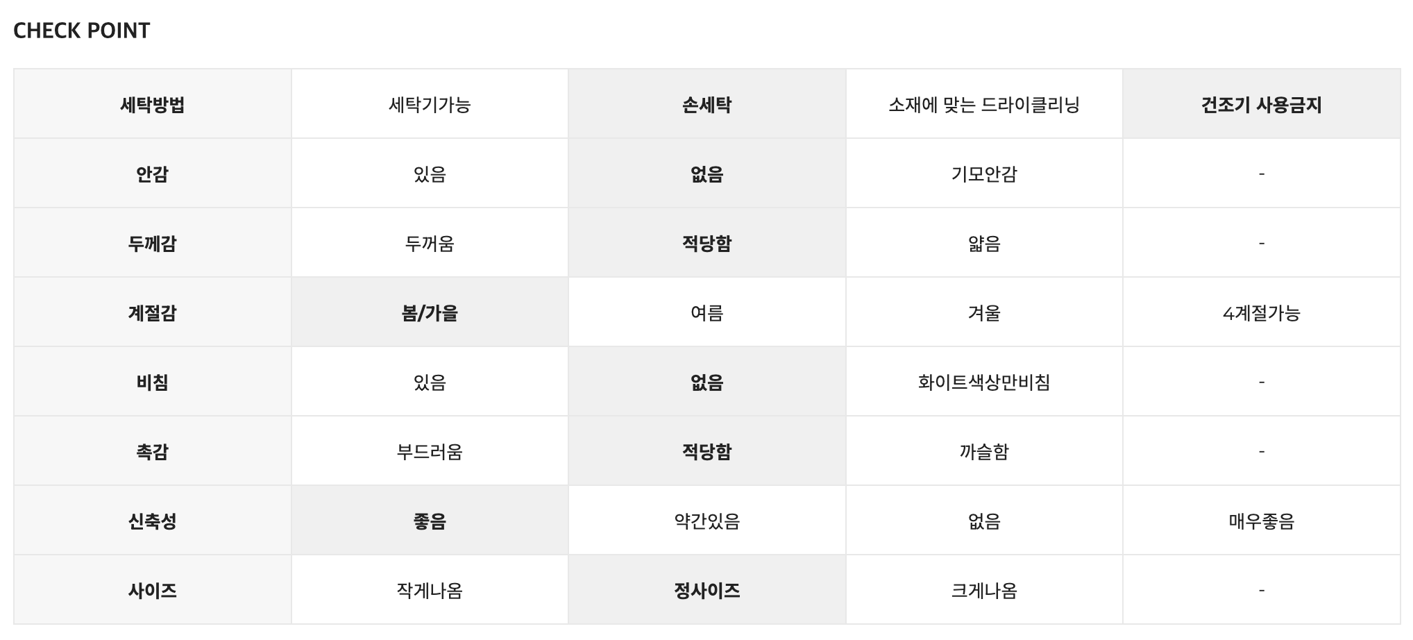 ※ 본 [상품정보고시]는 "상품정보 제공 고시"에 준하여, 의무적으로 표시하는 정보이며, [상품정보고시]와 [제품상세정보]의 내용이 일치하지 않을 경우에는 [상품정보고시]가 더 정확한 정보입니다.