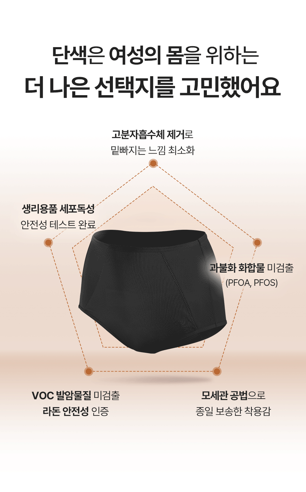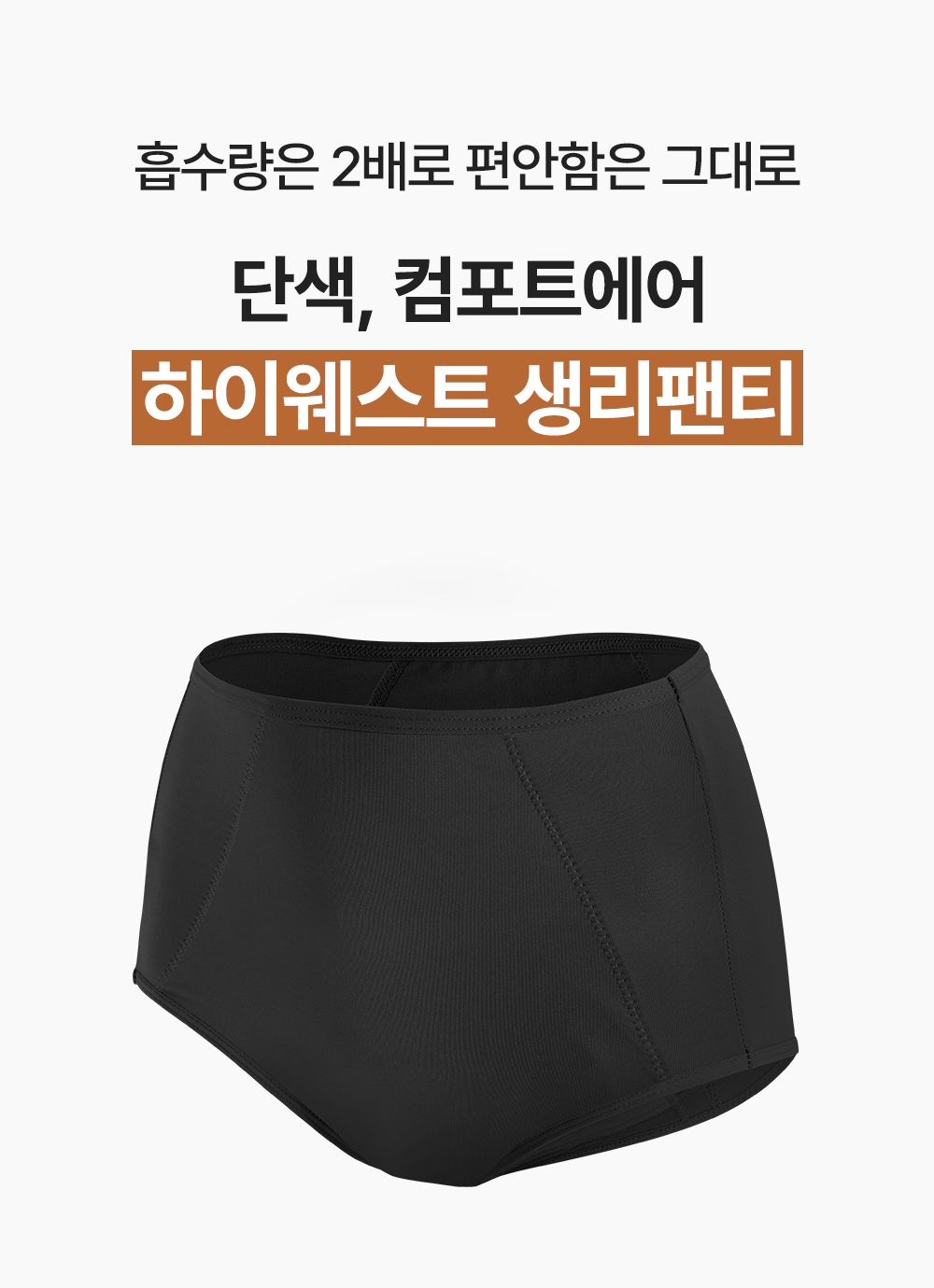 단색 컴포트에어 하이웨스트 생리팬티 3장 SET + (증정) 효소세제 300ml + 방수 파우치