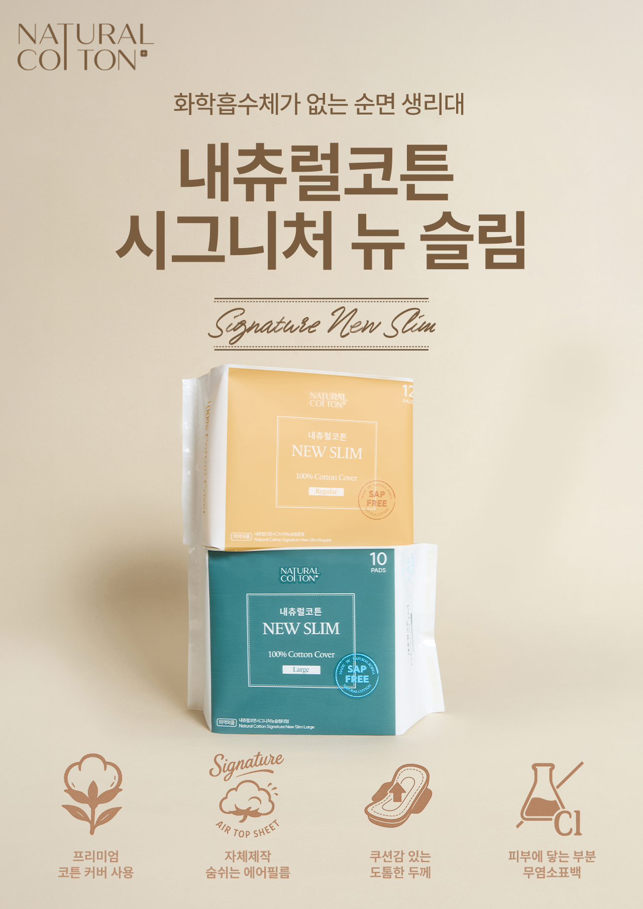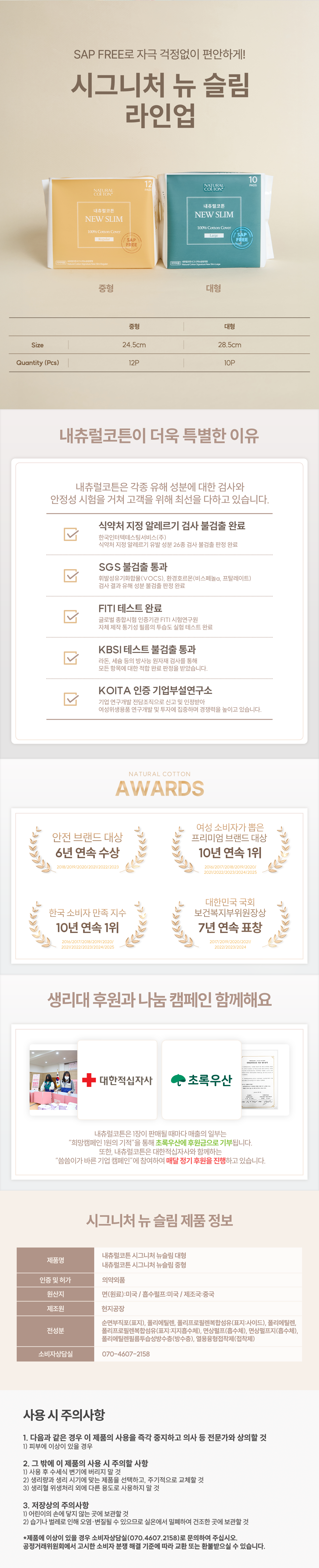 [내츄럴코튼] 시그니처 뉴슬림 순면커버 NO SAP 생리대 중형/대형 10팩 세트