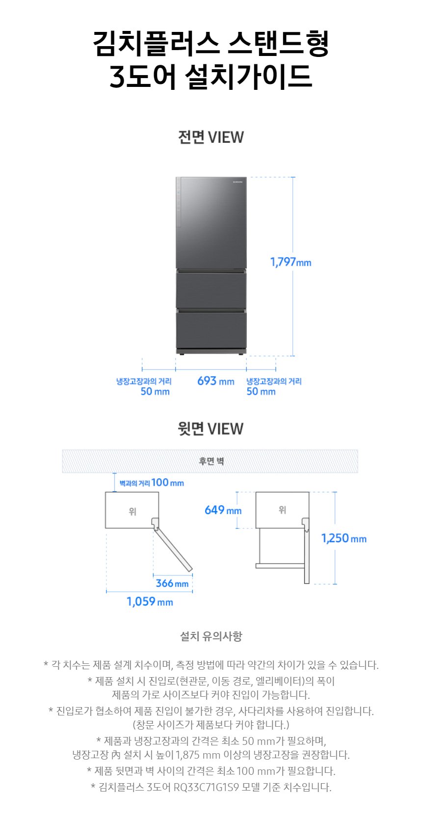 삼성 김치플러스 김치냉장고 3도어 328L 리파인드 이녹스 RQ33DG71J3S9