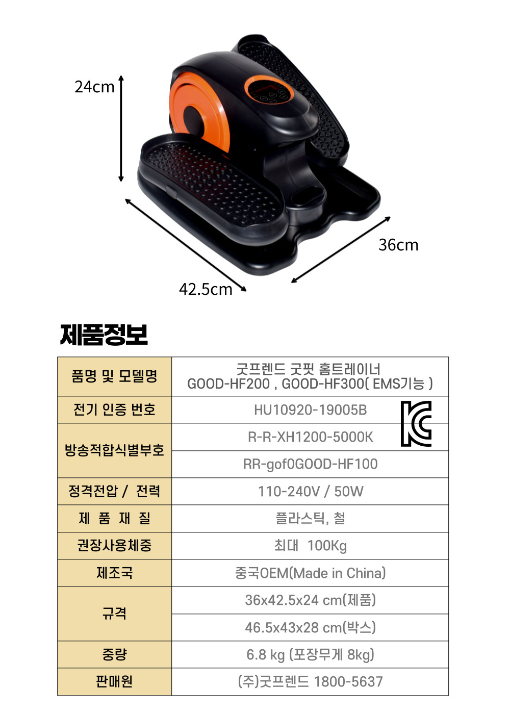 [굿프렌드] 홈핏 홈트레이너 전동스텝퍼 GOOD-HF300 (EMS기능)