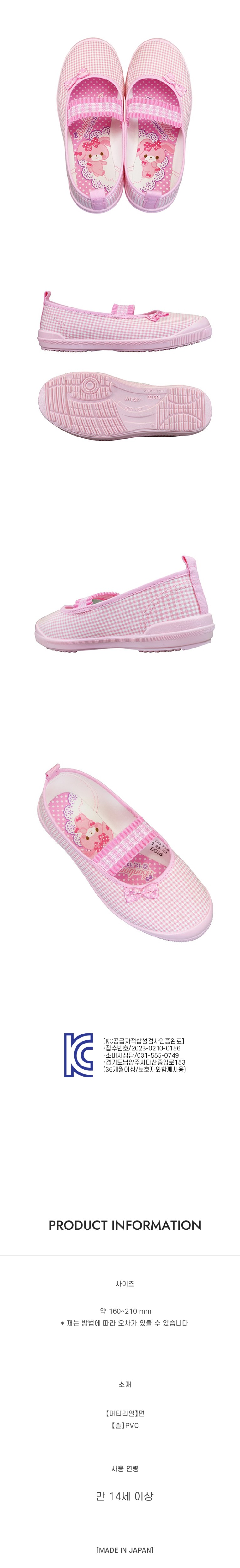 산리오 아사히 슈즈 본본리본 실내화 (핑크)
