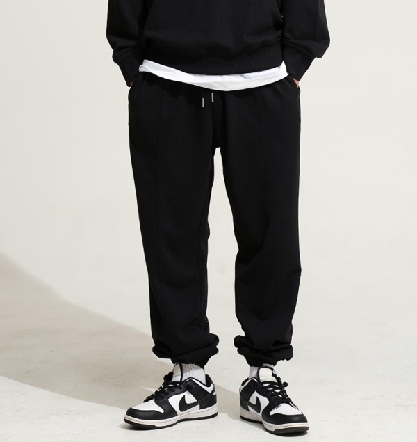 퀄리티높은 봉재 작업을 추가 하였으며 와이드 일자핏의 느낌과 조거팬츠의 특징을 살린 상품임 절개 맨투맨과 셋업구성하면 다양한 연출 가능
