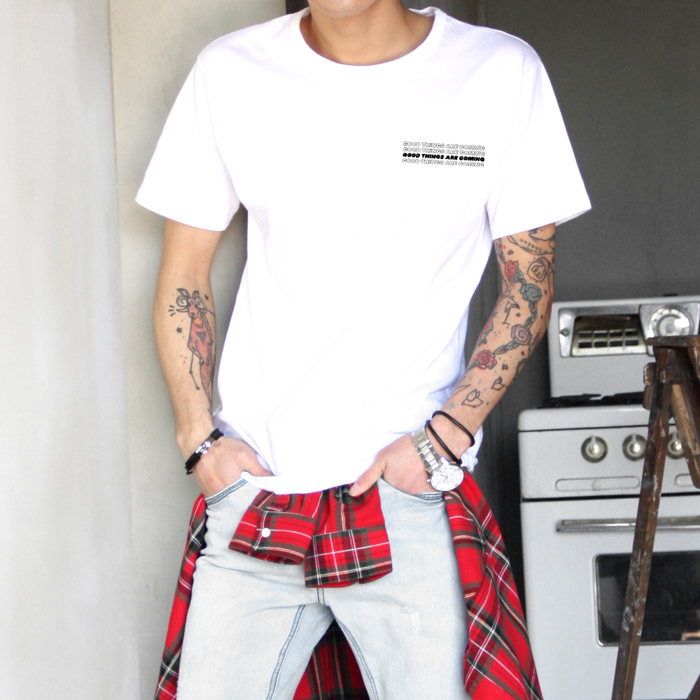 유행을 타지 않는 디자인에 탄탄하고 부드러운 면소재로 부담없이 즐기기 좋은 심플한 데일리 아이템 으로 커플티로 착용해도 좋은 남녀공용 반팔티입니다.