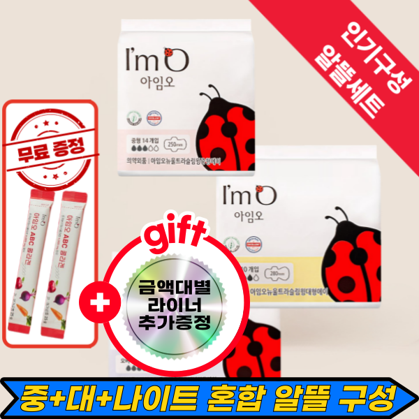 [금액대별증정][3+3 혼합구성][아임오 유기농 생리대][콜라겐or풋사과젤리 증정] 소,중,대,라이너,롱라이너,나이트